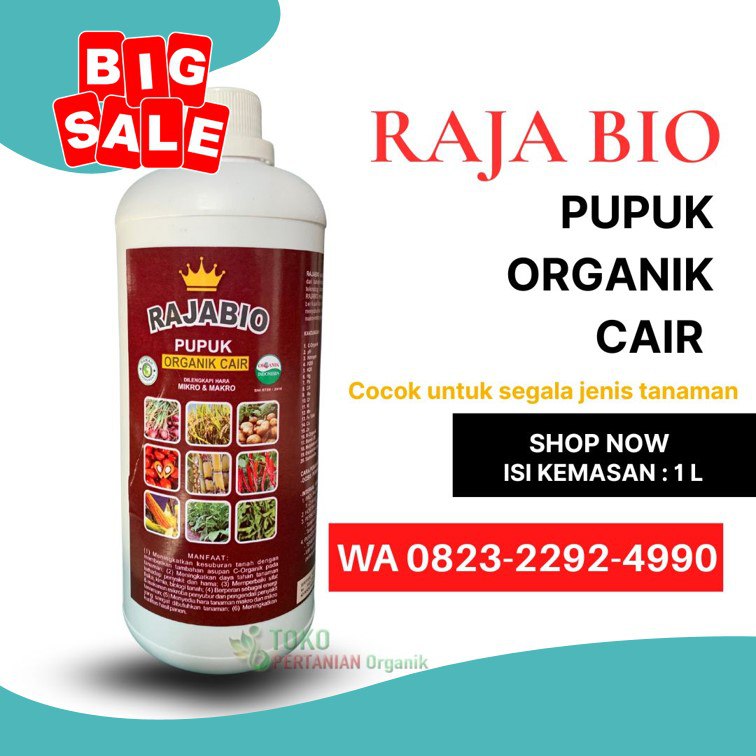 RAJABIO adalah pupuk organik cair diformulasikan dari bahah-bahan alami pilihan, diproses dengan teknologi fermentasi modern, sehingga pro duk RAJABIO menjadi produk pupuk organik cair yang berkualitas mengandung C-Organik yang me nyuburkan tanah dan mengandung unsur hara ma kro-mikro yang mudah diserap tanaman